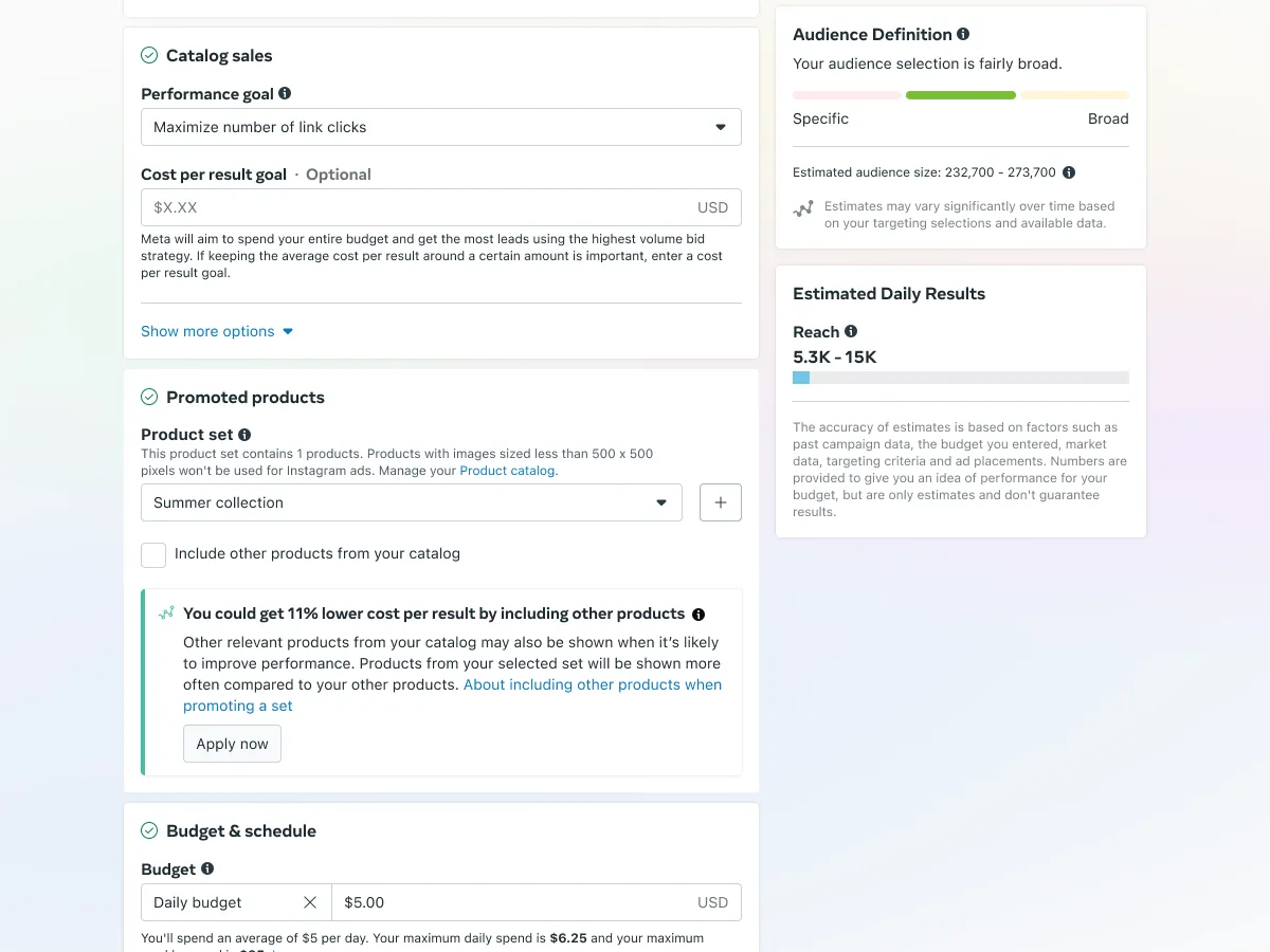 I designed guidances across the ads ecosystem — spanning domains like budget, signals, and value optimization, and across each stage of the advertising journey from campaign planning to post-launch. Finding the right opportunities, working with data science and product to prove the value, then designing and shipping the experience.